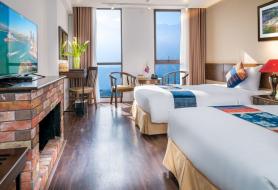 diện tích 25-28 m², được trang bị đầy đủ tiện nghi như 01 giường đôi hoặc 02 giường đơn, tivi LCD, minibar, bàn làm việc, két sắt và phòng tắm riêng. Phòng có ban công rộng rãi hướng ra núi, cho bạn cảm giác thư thái và hòa mình vào thiên nhiên