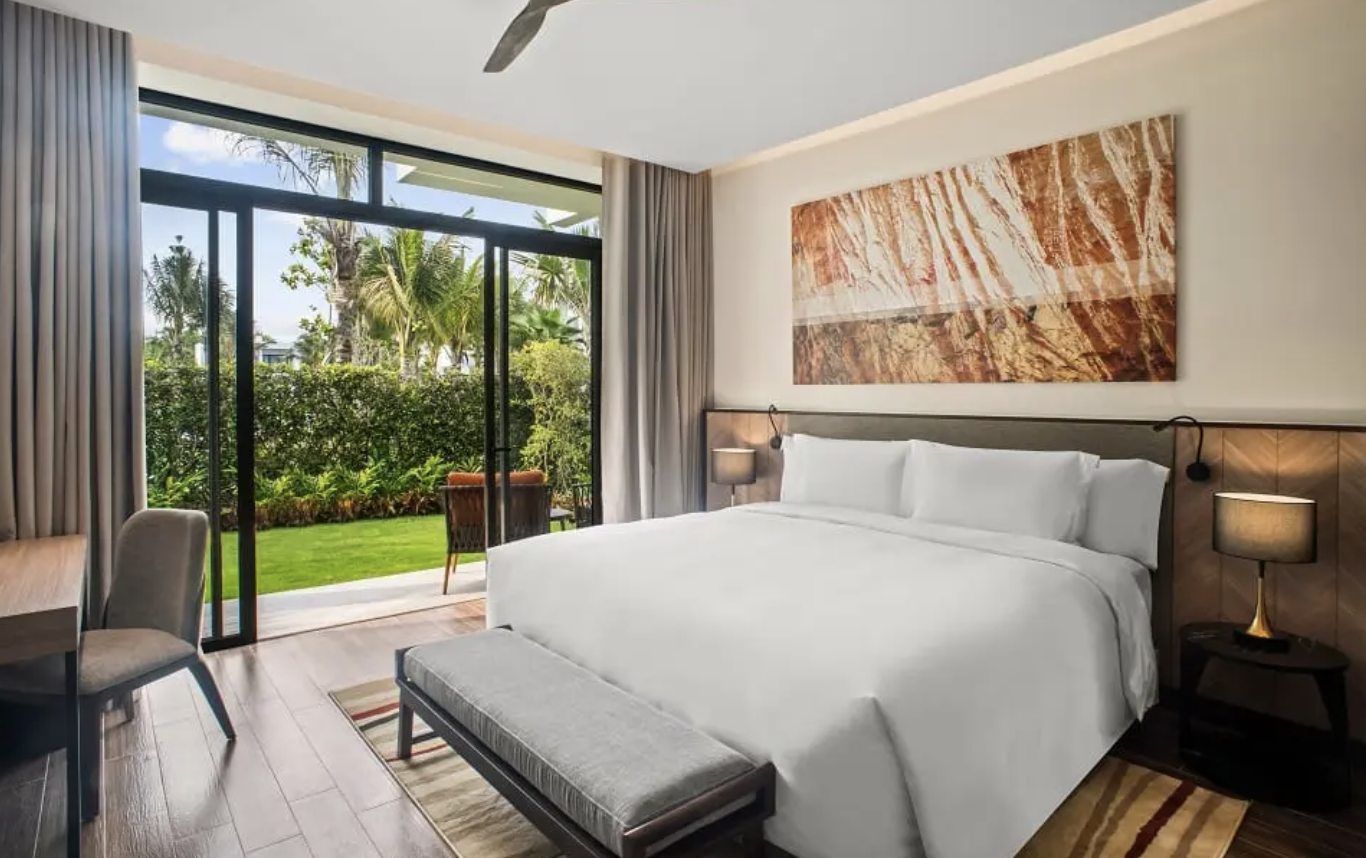 Diện tích khoảng 246m2, view hướng vườn/hồ bơi, hạng phòng gồm 01 giường đôi, có phòng tắm có buồng tắm đứng vòi hoa sen, bồn tắm, bể bơi riêng.