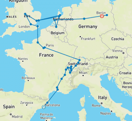 Frankfurt - Munich – Hallstatt – Venice – Milan – Lucerne – Engelberg – Lauterbrunnen – Interlaken – Bern – Titisee – Colmar – Paris