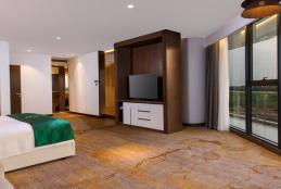 Diện tích khoảng 250m², nằm ở tầng cao nhất, hướng toàn cảnh hồ Đầm Vạc, không gian sang trọng bậc nhất; phòng tắm cao cấp với bồn tắm nằm và buồng tắm đứng riêng biệt.