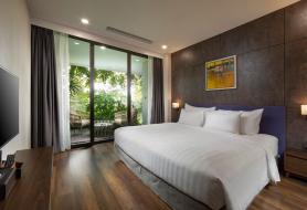 Diện tích khoảng 60 m²: 1 phòng ngủ & phòng khách, giường đôi hoặc đơn, ban công view rừng, phòng tắm có bồn tắm nằm + vòi sen.