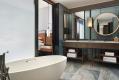 Diện tích diện tích khoảng 74 m², gồm phòng ngủ chính và khu phòng khách riêng biệt. Phòng được trang bị giường đôi king và cửa sổ lớn nhìn ra cảnh thành phố/núi, phòng tắm hiện đại với bồn tắm và buồng tắm đứng.