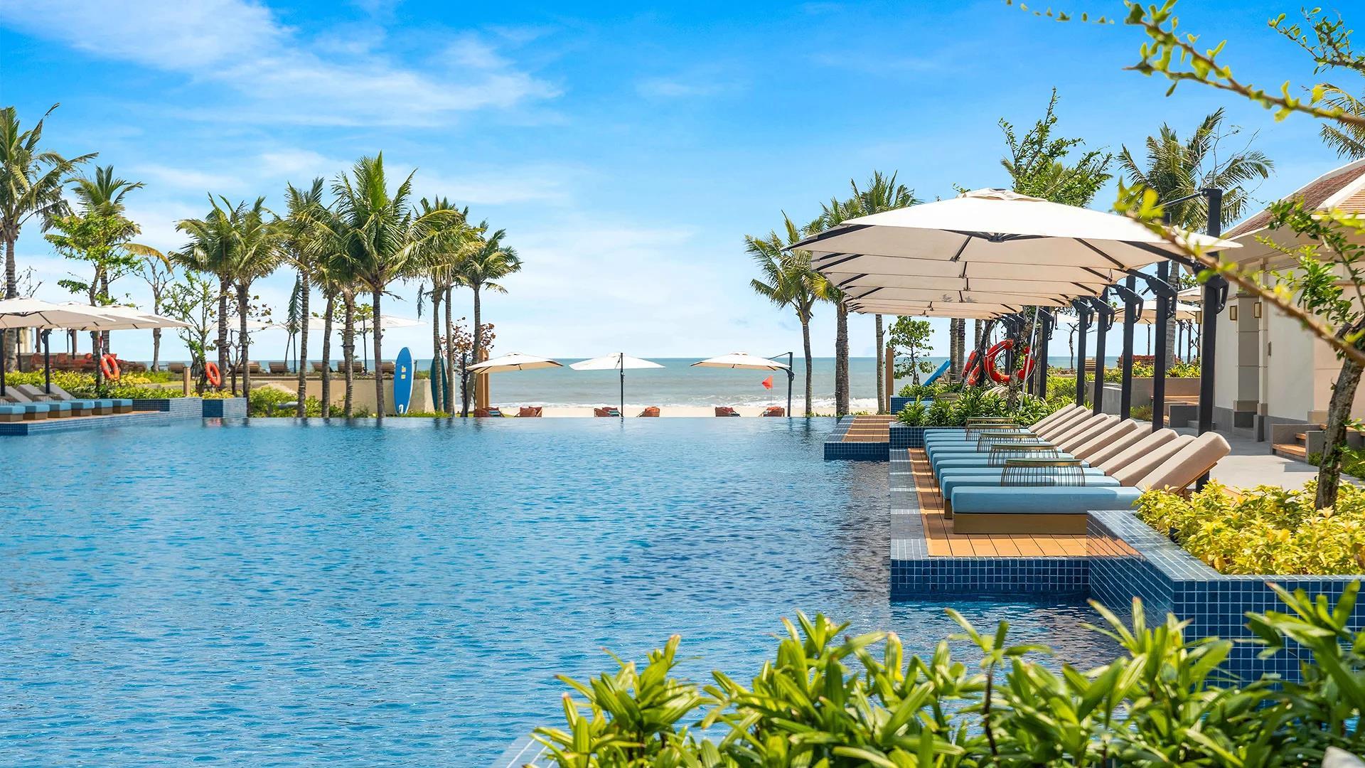 - Giải trí tại bãi biển Non Nước và hồ bơi tràn bờ hướng biển