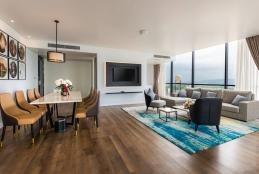 Phòng có diện tích ~98 m², gồm 2 phòng ngủ – 1 giường king + phòng khách liền kề, phòng tắm có 1 buồng tắm đứng và 1 bồn tắm nằm. Hạng phòng cao cấp nhất, không gian rộng rãi, view Vịnh Hạ Long tuyệt đẹp.