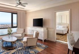 Hạng phòng cao cấp dành cho gia đình hoặc nhóm khách, với 02 phòng ngủ riêng biệt, không gian sinh hoạt chung rộng rãi. Phòng được bố trí linh hoạt giường đôi/giường đơn, phù hợp cho nhiều đối tượng khách, mang đến sự riêng tư nhưng vẫn gắn kết trong cùng một không gian lưu trú sang trọng.