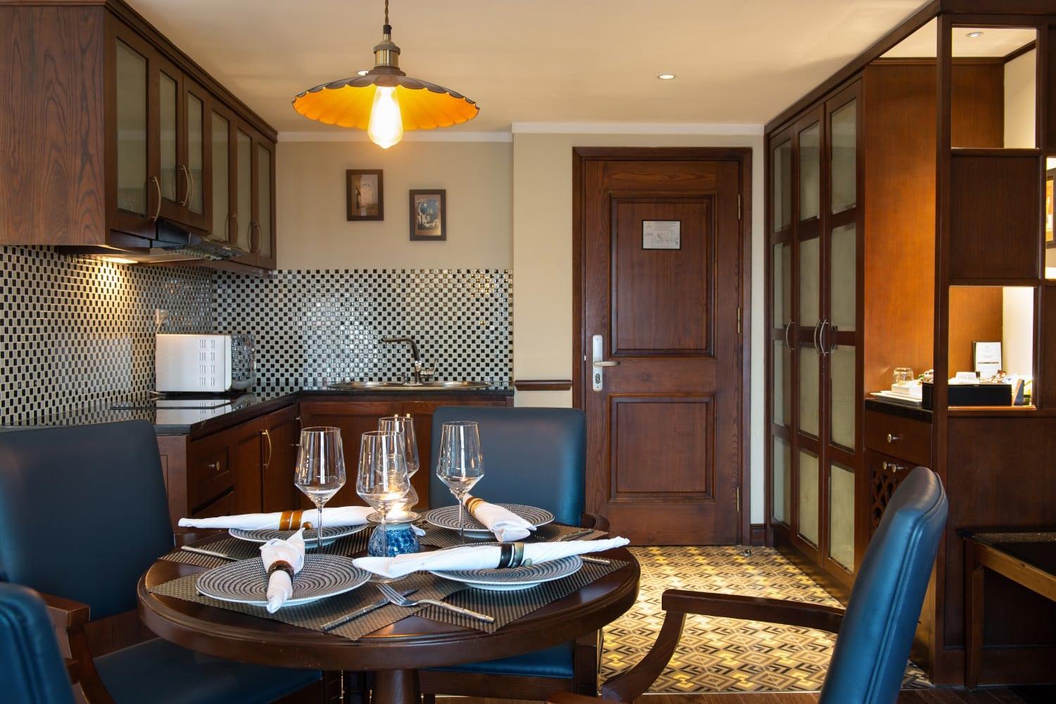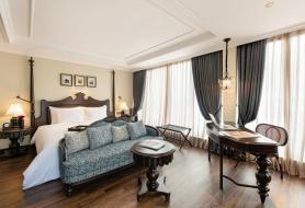 Junior Suite có diện tích khoảng 30–32 m², có khu vực ghế sofa và bàn làm việc. Phòng được trang bị 01 giường King, có khu vực tiếp khách nhỏ trong phòng. Phòng tắm khép kín với vòi sen đứng. Tầm nhìn hướng phố sôi động của khu Phố Cổ Hà Nội.
