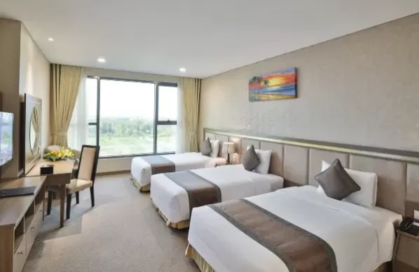Diện tích khoảng 37m2, view hướng phố, phòng gồm 03 giường đơn, 01 phòng tắm có vòi sen.