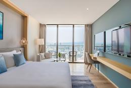 Du khách cảm nhận trọn vẹn nhịp sống sôi động của thành phố Đà Nẵng. Phòng được trang bị ban công riêng và khu vực làm việc executive tiện nghi.