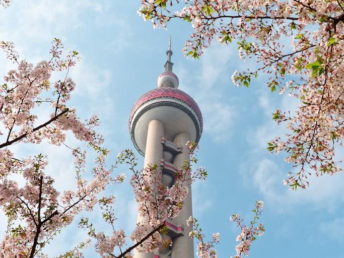 Tháp Đông Phương Minh Châu (chụp hình bên ngoài): biểu tượng hoa lệ của thành phố rực rỡ này. Tháp truyền hình Đông Phương Minh Châu quy tụ nhiều khu vui chơi và địa điểm ăn uống với tầm nhìn ngắm trọn thành phố.