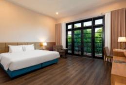 Diện tích khoảng ~40–42 m², gồm 01 giường đôi hoặc 02 giường đơn, ban công hướng khu vườn xanh hoặc một phần vịnh, phong cách thiết kế Pháp hiện đại, nội thất trang nhã, phù hợp cho du khách muốn không gian rộng rãi hơn giữa thiên nhiên.