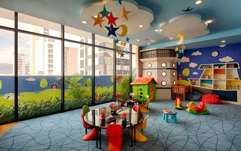 Vinpearl Beachfront Nha Trang có khu vui chơi dành cho trẻ nhỏ với các hoạt động nhẹ nhàng như vẽ tranh, xếp hình. Ngoài ra, khách sạn còn cung cấp dịch vụ trông trẻ có tính phí, du khách có thể liên hệ lễ tân để được hỗ trợ khi cần.