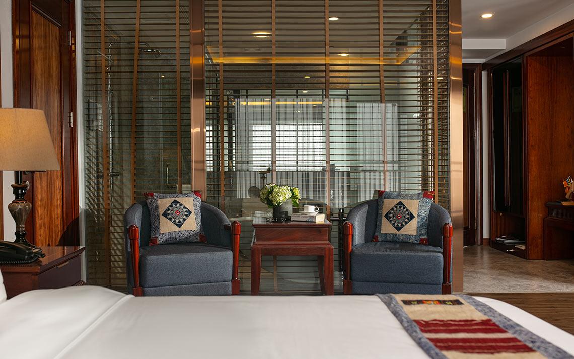 Diện tích 80m2, thực chất là sự kết hợp giữa hai phòng Deluxe liền kề nhau, có cửa thông giữa các phòng, có thể lựa chọn linh hoạt giữa giường đôi và đơn, sức chứa tối đa là 4 người lớn.
