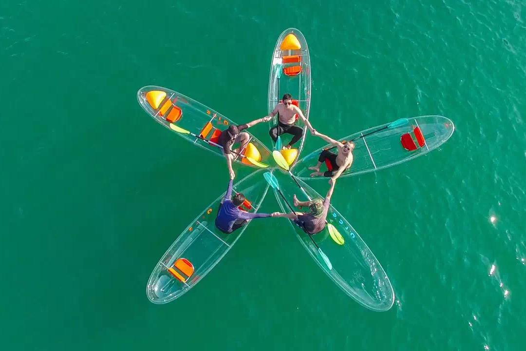 Điểm đến đầu tiên của hành trình là Mini Beach, Quý khách sẽ có những trải nghiệm đặc biệt cho các hoạt động biển bao gồm: Bơi, tắm nắng, chèo Kayak và thưởng thức đồ uống, hoa quả tươi trên bãi biển. Hay Quý khách có thể tham gia các hoạt động thể thao dưới nước như lặn sâu có bình khí, dù bay, moto nước hay thuyền chuối (chi phí tự túc).