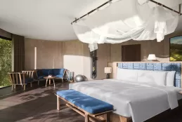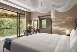 Hạng Wellbeing Suite có diện tích khoảng 87 m², bố trí 01 giường king hoặc giường đôi tùy lựa chọn. Phòng tắm hiện đại và tiện nghi cao cấp tạo cảm giác thư thái tối đa giữa núi rừng.