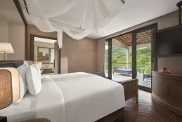 Mountain View Pool Villa có diện tích khoảng 75 m², bố trí 01 giường đôi, sở hữu hồ bơi riêng và tầm nhìn trực diện ra núi non. Phòng tắm riêng hiện đại với buồng tắm đứng và bồn tắm.