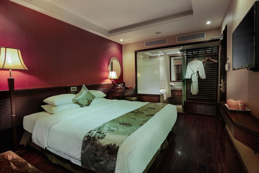 Phòng có diện tích rộng (khách sạn không công bố số mét vuông cụ thể), bố trí 01 giường đôi lớn kết hợp giường đơn (tùy cấu hình phòng), view phố hoặc view nội bộ. Phòng tắm trang bị 01 buồng tắm đứng và 01 bồn tắm nằm.