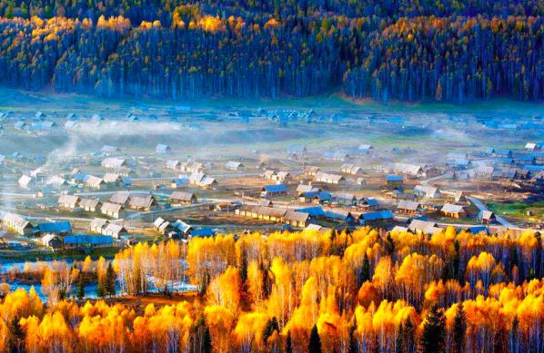 - khu danh lam thắng cảnh Hemu Jadenyu, tham quan Làng Hoà Mục – nằm ở huyện Burqin, vùng Altay, phía Bắc Tân Cương, cách hồ Kanas khoảng 30km về phía Đông, ngôi làng nhỏ là nơi sinh sống của người Kazakhstan và người Tuva Mông Cổ. Ngôi làng xinh đẹp thanh bình như một chốn thiên đường được giấu giữa non xanh nước biếc trùng điệp. Đây là 1 trong 6 ngôi làng đẹp nhất Trung Quốc. Quý khách chiêm ngưỡng dòng sông và Đài Quan sát Hoà Mục.