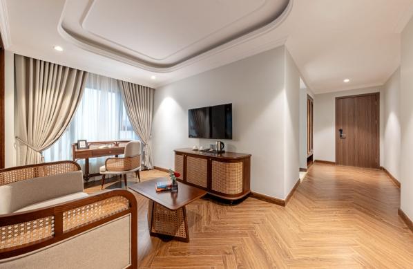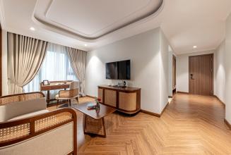 Rộng khoảng 35m², là suite signature của khách sạn với giường King sang trọng và ban công lớn nhìn ra thành phố, nơi du khách có thể thưởng thức cảnh quan Hà Nội mỗi sáng. Phòng tắm vòi sen riêng cùng không gian tiếp khách tạo nên trải nghiệm nghỉ dưỡng cao cấp