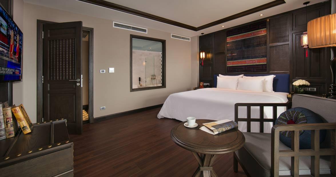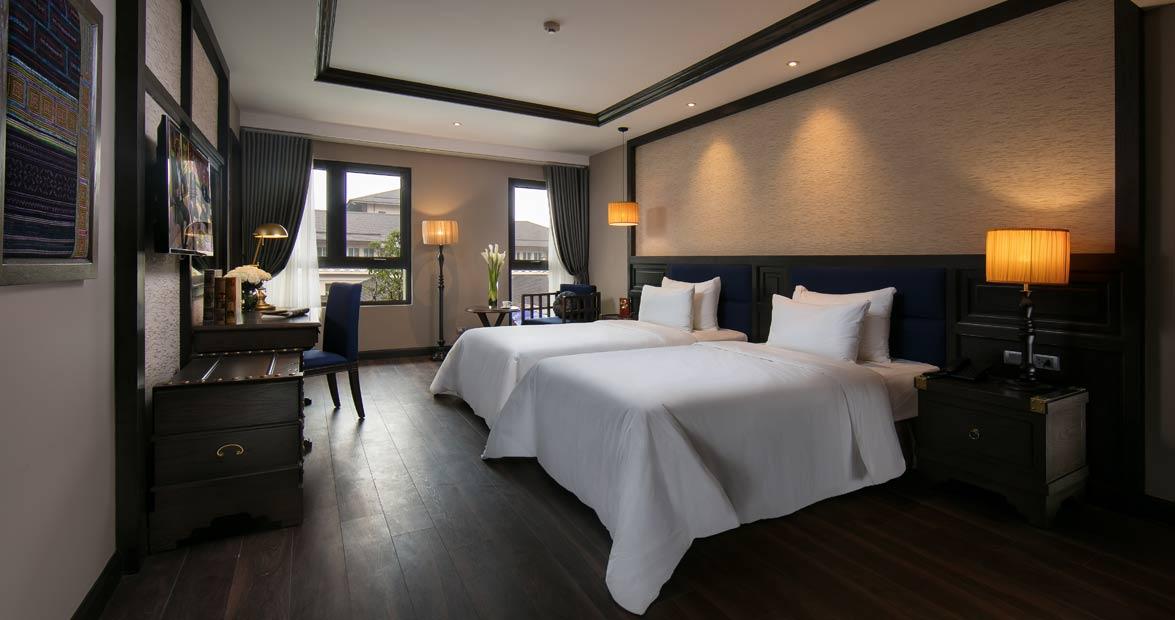 Các phòng rộng rãi, ấm cúng và được bố trí hợp lý với diện tích 32-37 m². Hạng phòng có tất cả những tiện nghi sang trọng để làm quý khách hài lòng như TV, điều hoà, nhà tắm với vòi hoa senvà bồn tắm nóng lạnh, giường linen chất lượng chăm sóc cho giấc ngủ và những giây phút nghỉ ngơi của bạn.
