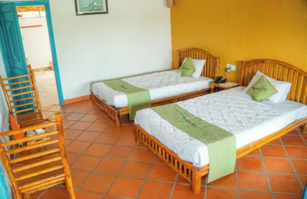 Diện tích khoảng 48m2, view hướng vườn, phòng gồm 01 giường đôi hoặc 02 giường đơn và có ban công/sân riêng, 01 phòng tắm có vòi sen.