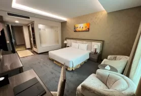 Diện tích khoảng 68 m2, hướng sông và thành phố. Phòng có 01 giường đôi, không thể kê thêm giường phụ. Phòng tắm có bồn tắm Jacuzzi. Phòng khách riêng có sofa. Phòng dành cho 02 khách.