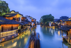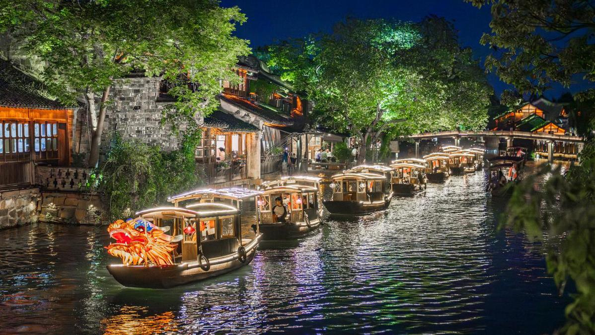 Ô Trấn Tây Sách - khu vực đẹp và hoàn chỉnh nhất của cổ trấn Ô Trấn, nổi bật với hệ thống kênh đào đan xen, nhà cổ gỗ đen mái ngói cong mang đậm phong cách Giang Nam. Du khách tham quan các công trình cổ, xưởng thủ công truyền thống, dạo bộ hoặc trải nghiệm thuyền trên kênh, cảm nhận không gian trầm mặc và nhịp sống chậm rãi của cổ trấn. Khi đêm xuống, Tây Sách rực rỡ ánh đèn lồng phản chiếu trên mặt nước, tạo nên khung cảnh cổ trang huyền ảo, là điểm check-in không thể bỏ lỡ trong hành trình.